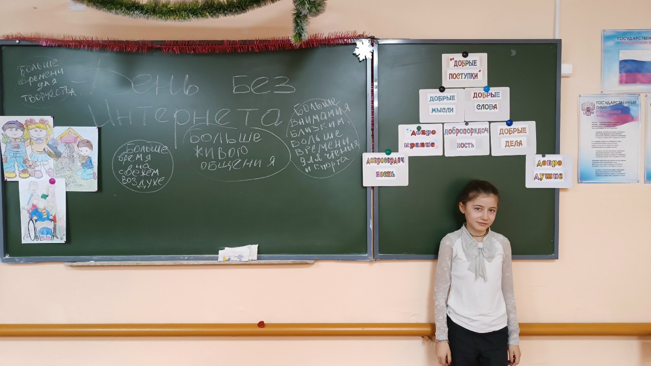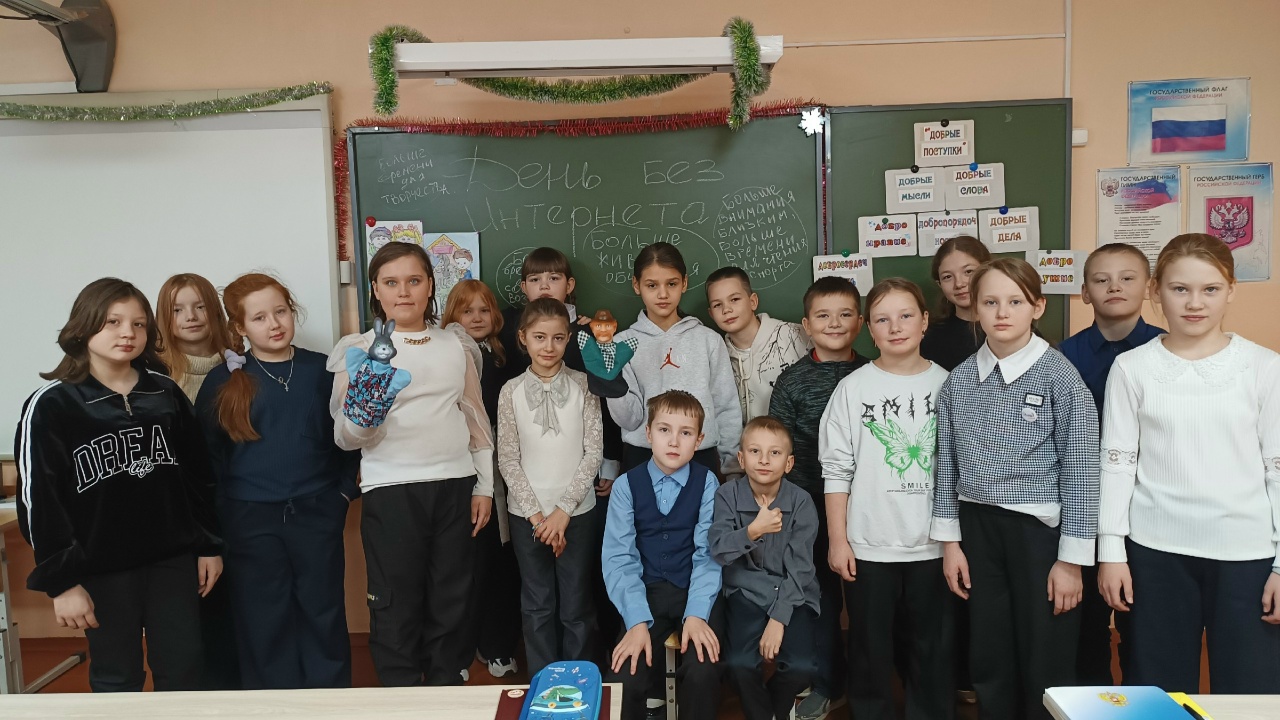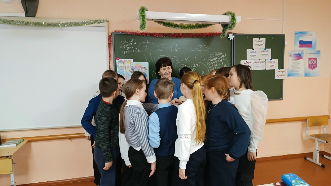 В ходе мероприятия ребята рассуждали, делали выводы насколько Интернет «вошёл» в нашу жизнь сколько пользы от «Всемирной паутины», сколько времени она занимает в нашей жизни. Говорили и о том, что нельзя забывать и о живом общении с друзьями, родственниками, как нужно быть внимательным к близким и родным. Ребята играли в игру «Пирамида добра», говорили друг другу, за что можно поблагодарить одноклассника, показали мини-сценку «Как дед Матвей зайцу про Интернет рассказывал». Всё получилось интересно, с юмором и со смыслом.