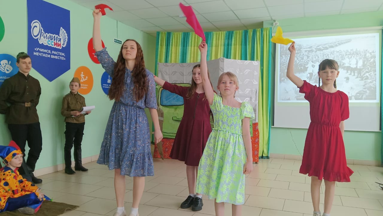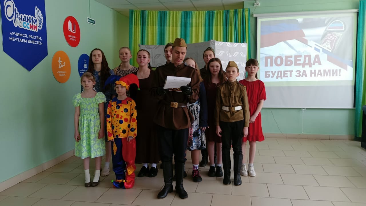 Конечно, мы не могли не сказать об артистах, которые и сейчас помогают нашим ребятам на СВО приближать Победу . Была исполнена песня Александра Степанова «Дай ему сил». Песню пели стоя, глотая слезы, с гордостью и твёрдой уверенностью в том, что наша Победа обязательно придёт.